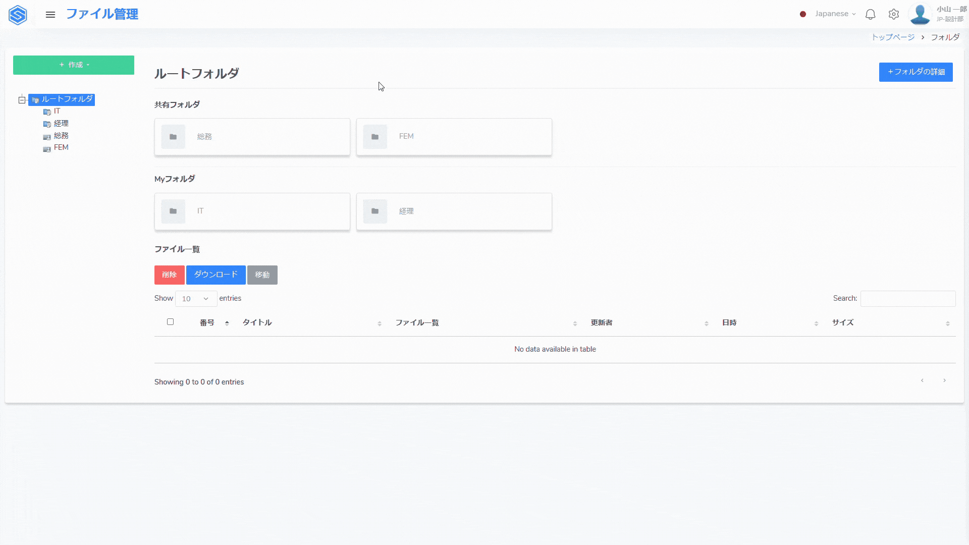 アクセス権の内容は、フォルダごとに異なります。閲覧を許可されていないフォルダは表示されません。