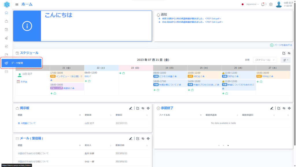 データ管理に保存するデータの中には、決算報告書や個人情報を含むデータなど、扱いに注意が必要なデータが含まれる場合があります。このため、データの閲覧や更新を制限できるよう、フォルダにアクセス権を設定することができます。