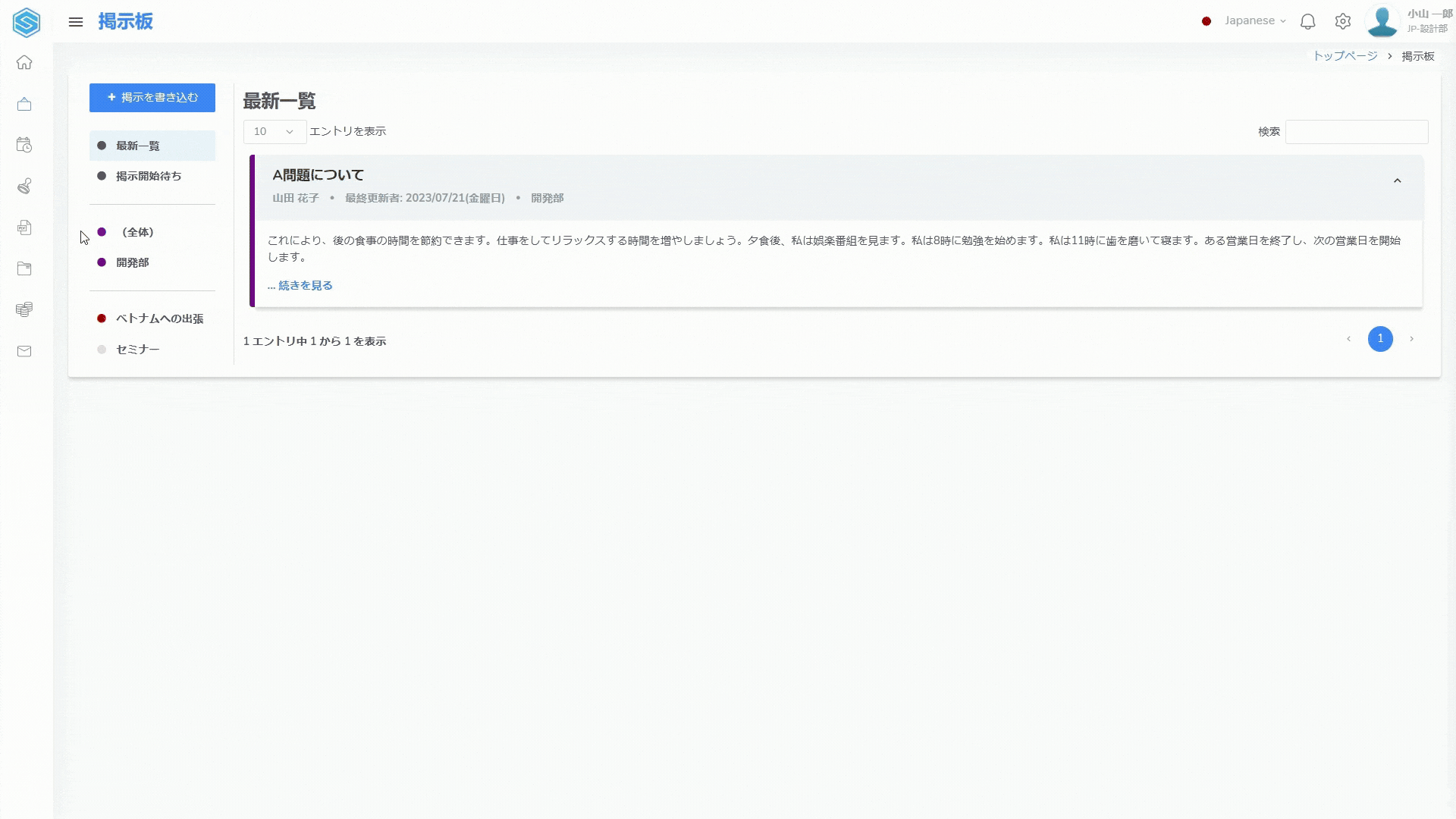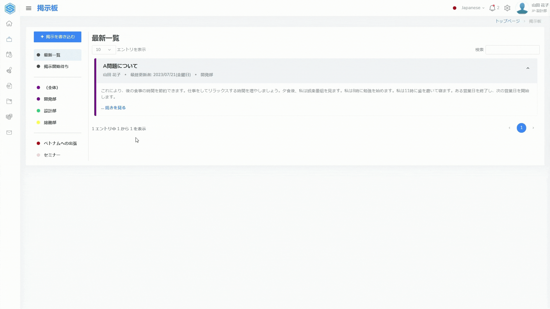 システム管理者の設定によって、コメントを書き込むことができる掲示はコメントとリアクションを追加することができます。