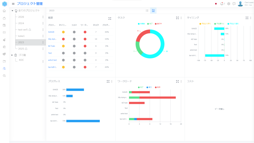 「カテゴリ名」>>「ダッシュボード」をクリックして、カテゴリー内のプロジェクトに関連する情報の画面が表示されます。
