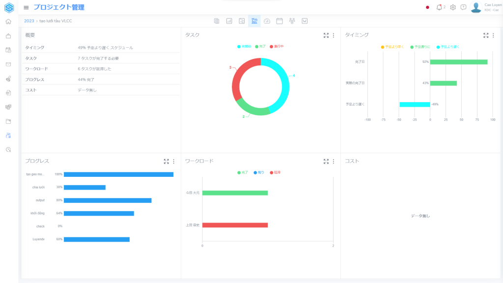 「プロジェクト名」>>「ダッシュボード」をクリックして、プロジェクトに関連する情報の画面が表示されます。