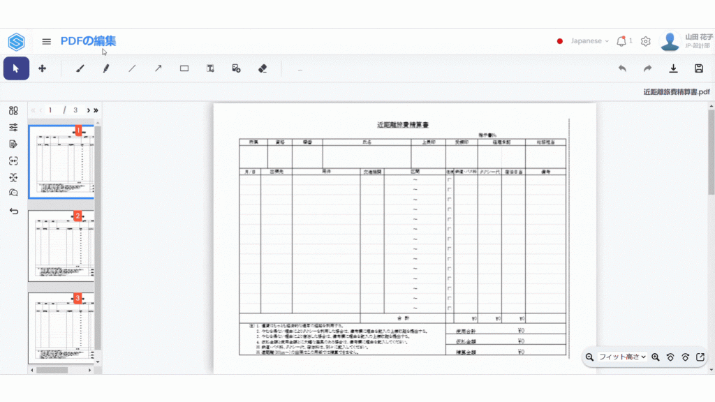 クリックすると、以下のようにページのサムネイルが表示されます。
