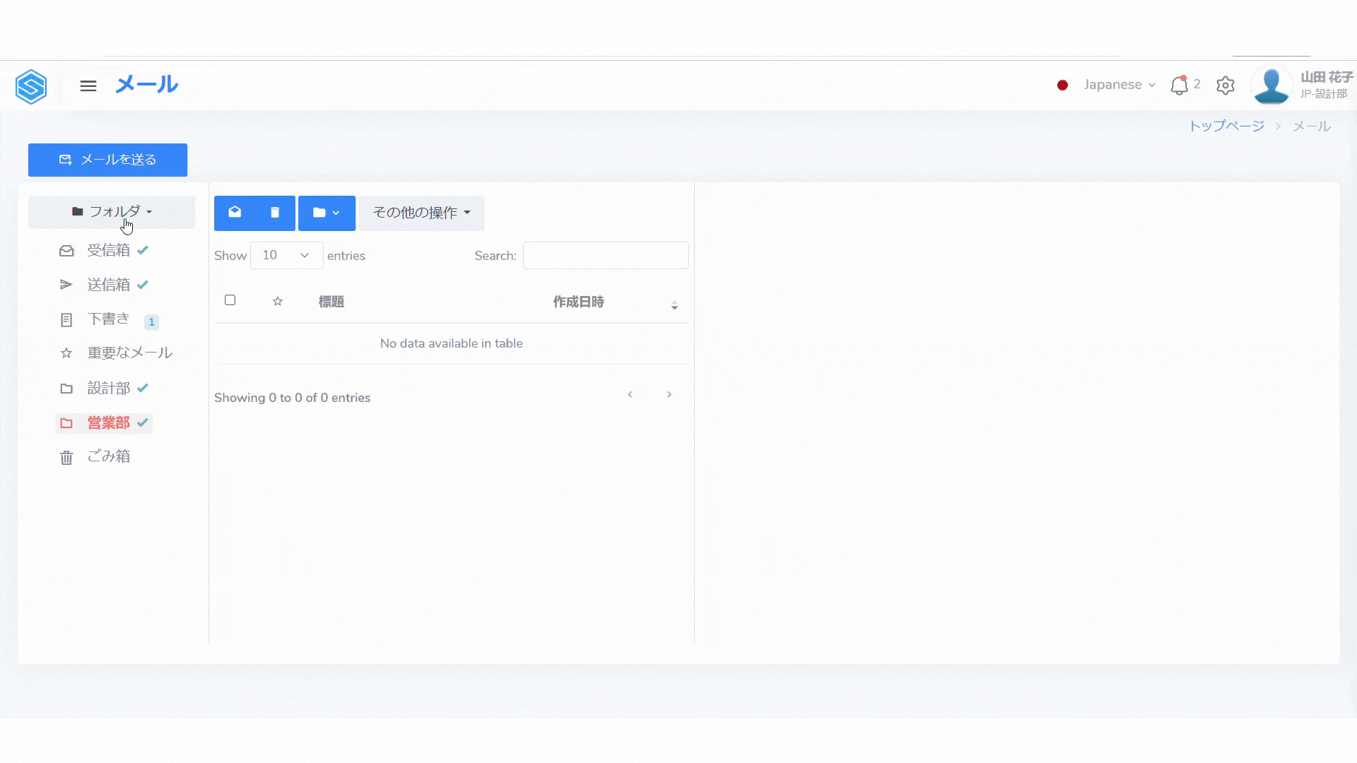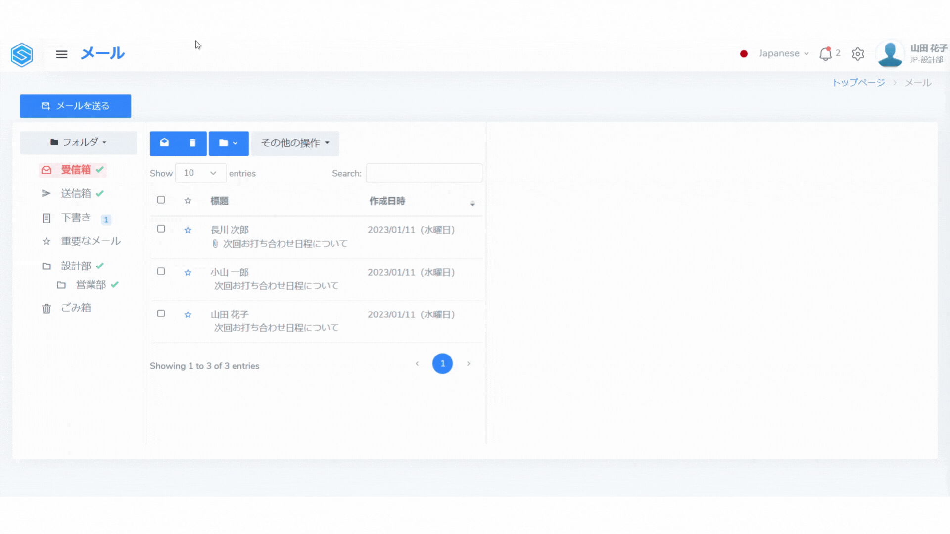 フォルダの作成や整理、メールの移動などの機能により、メールを管理することができます。