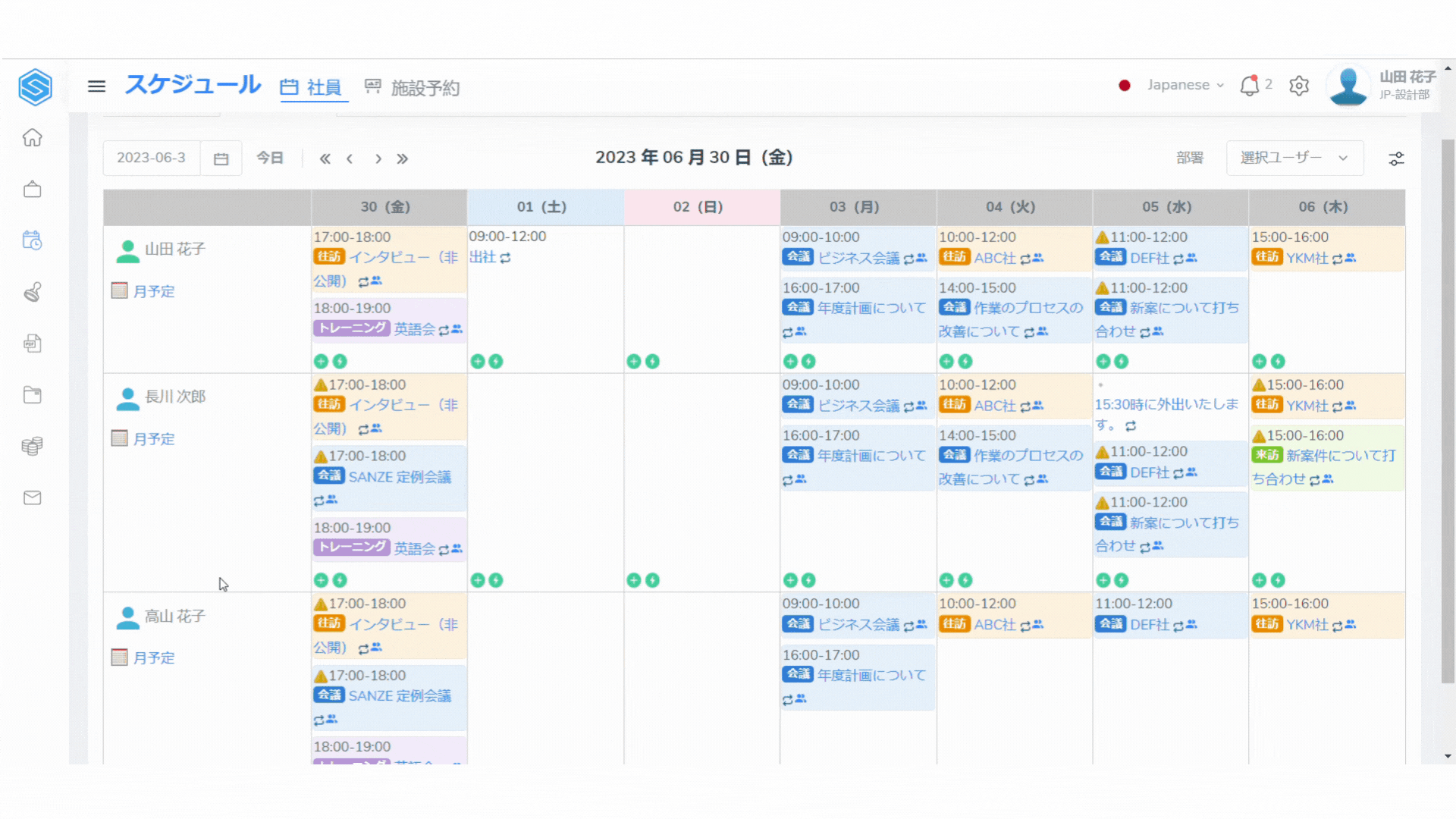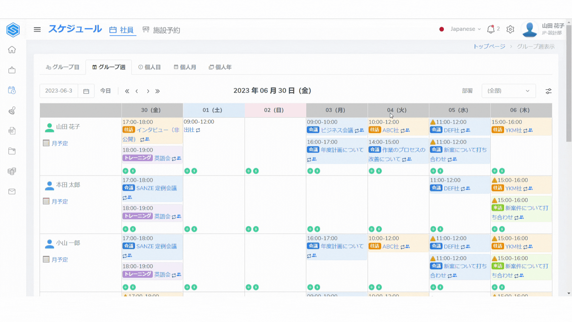 変更が完了したら、「グループ週表示へ」のボタンをクリックし、メイン画面のスケジュールで確認します。