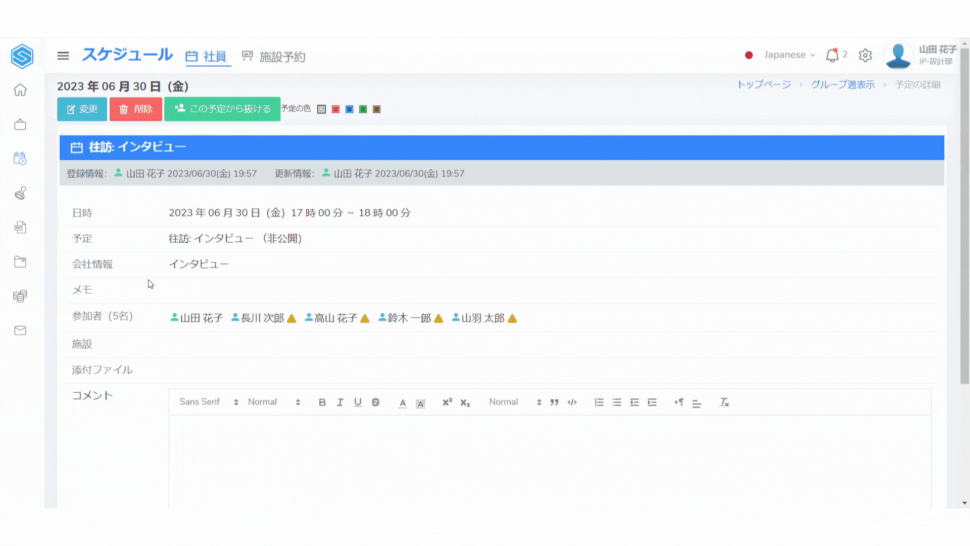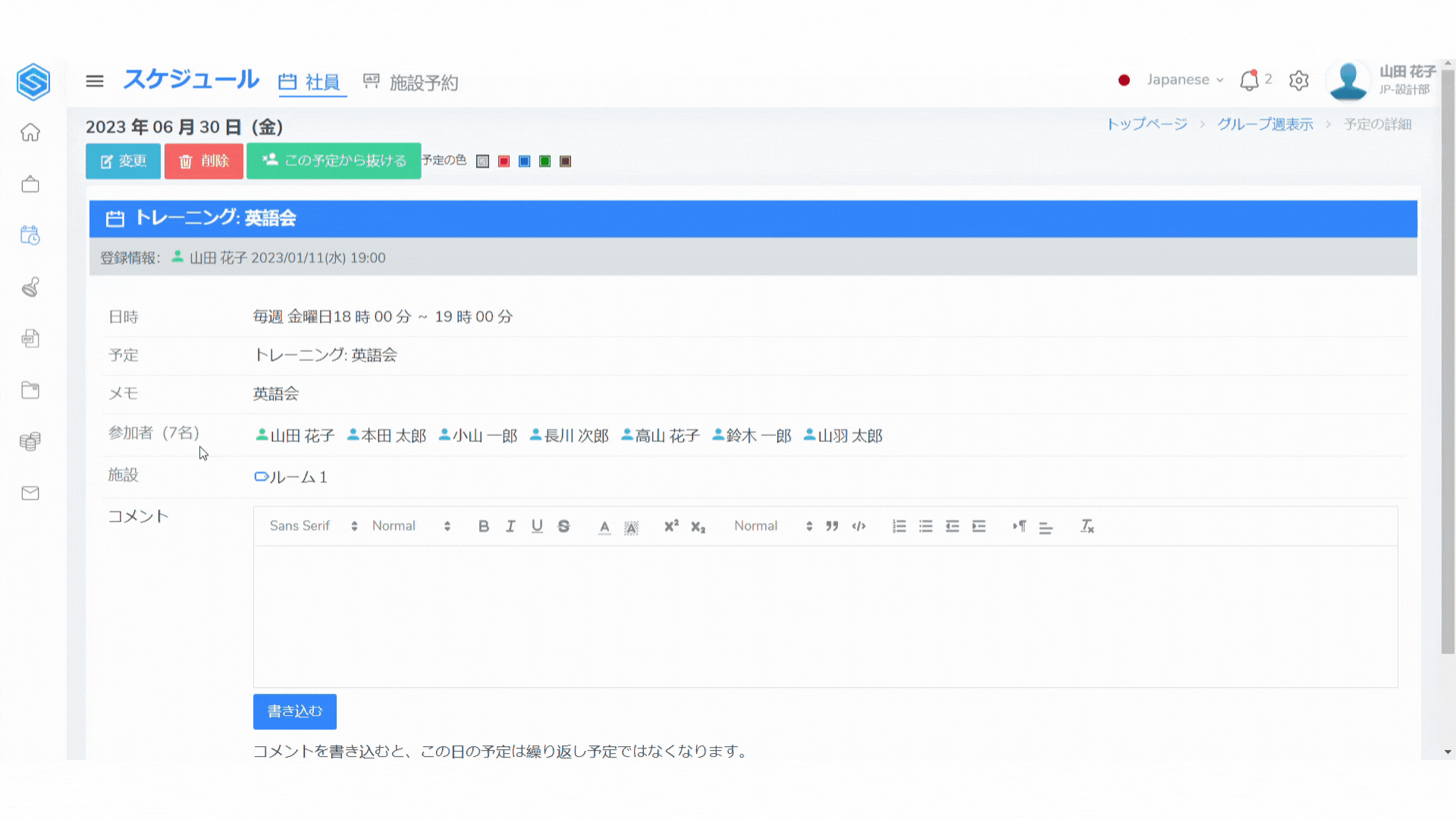ステップ4:予定にコメント追加・変更・削除する #