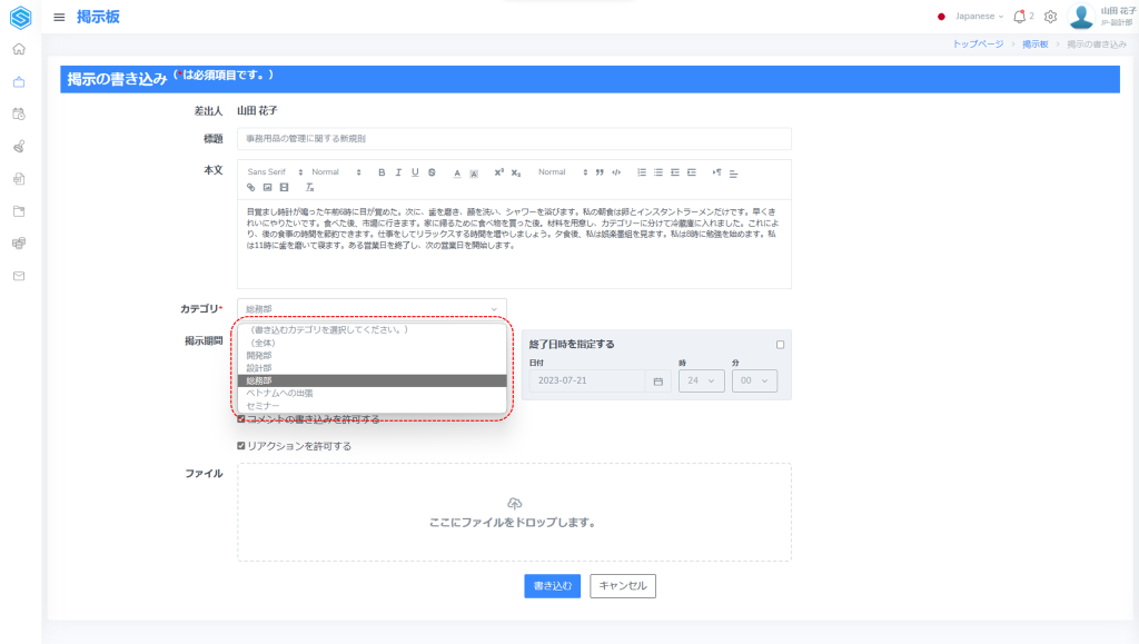 掲示を書き込むカテゴリを確認する #