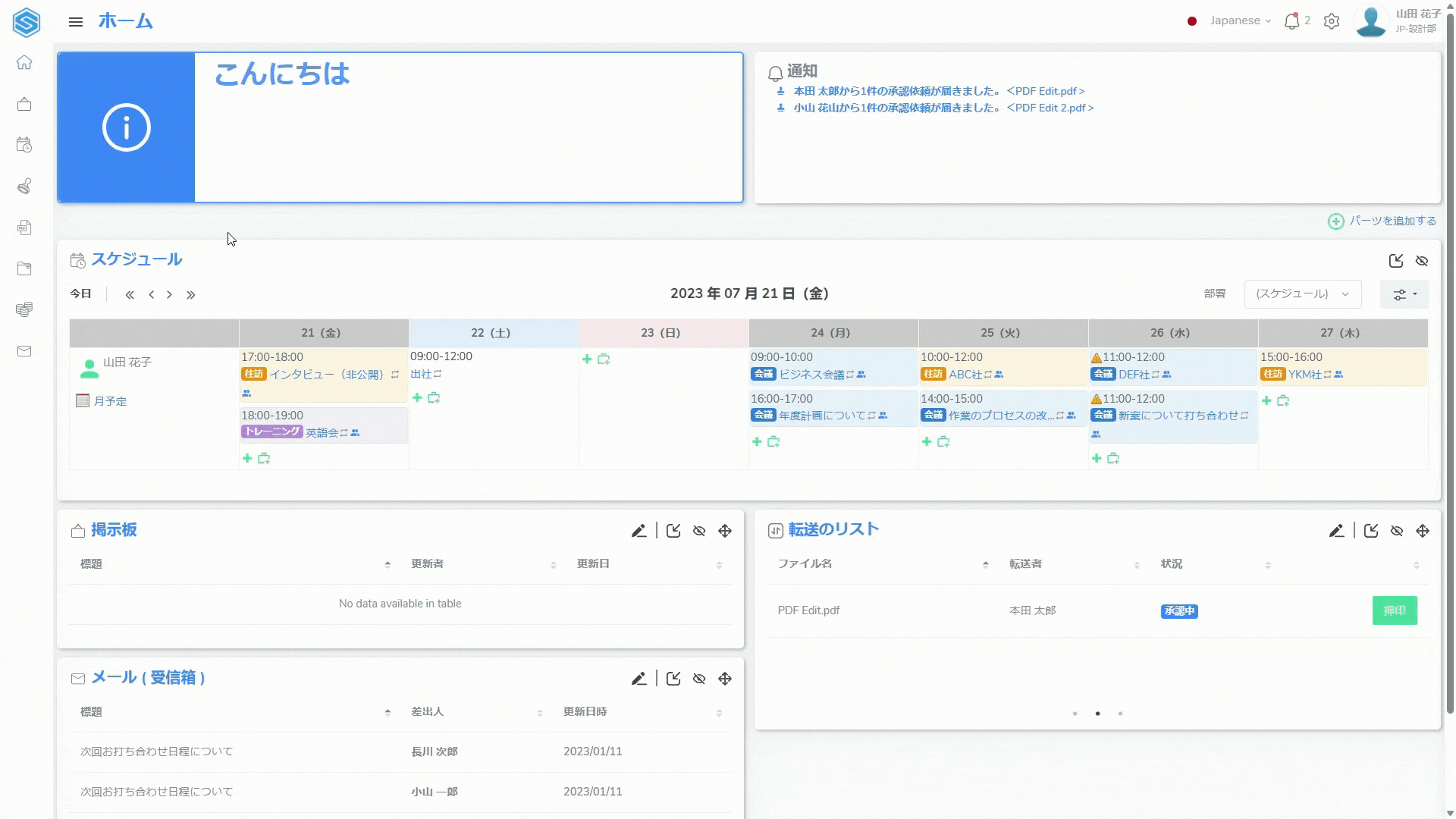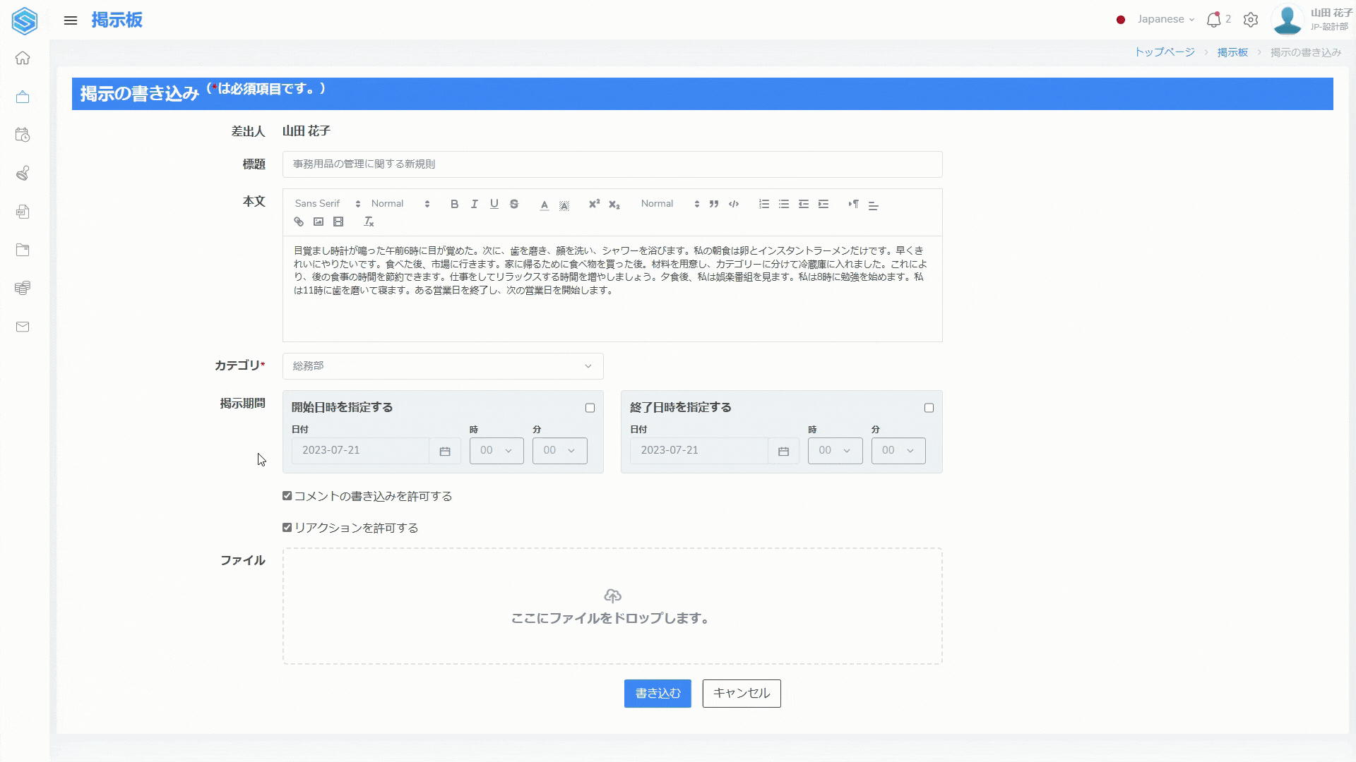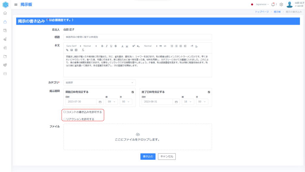 グループや組織単位など広範囲なユーザー間のコミュニケーションに使用するために、以下の手順で掲示を作成することができます。
