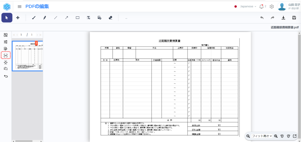 PDF編集のメイン画面の左のバーで「結合」のアイコンをクリックします。