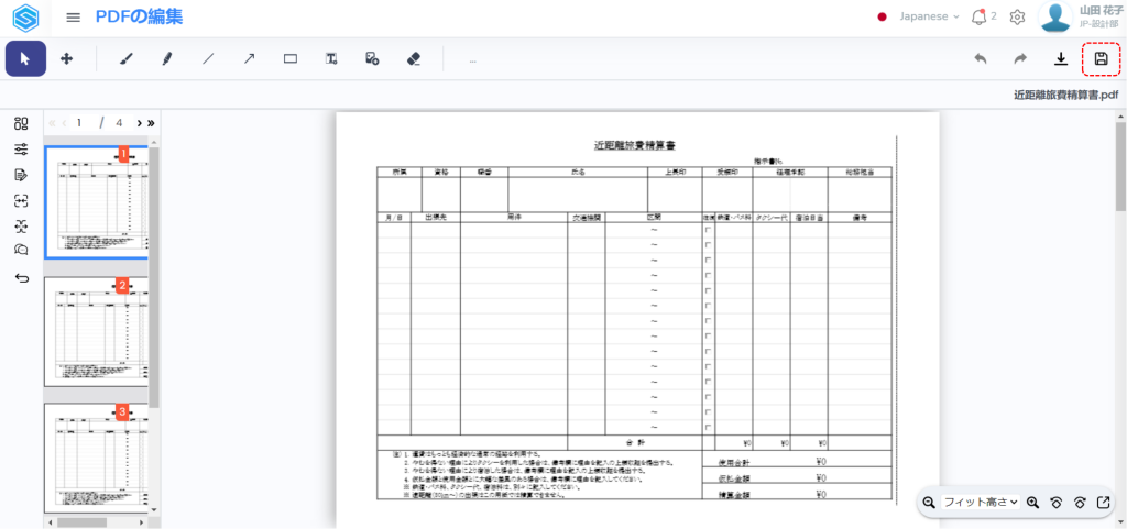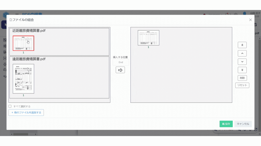 PDFファイルの結合が終了したら、「保存」のボタンをクリックします。