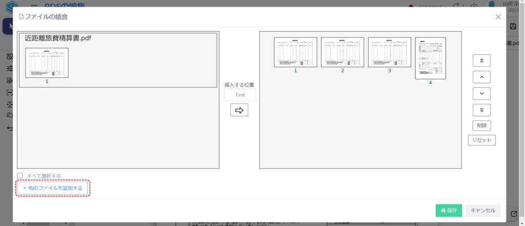 他のファイルを追加したい場合、「他のファイルを追加する」のボタンをクリックし、上記と同じように結合します。